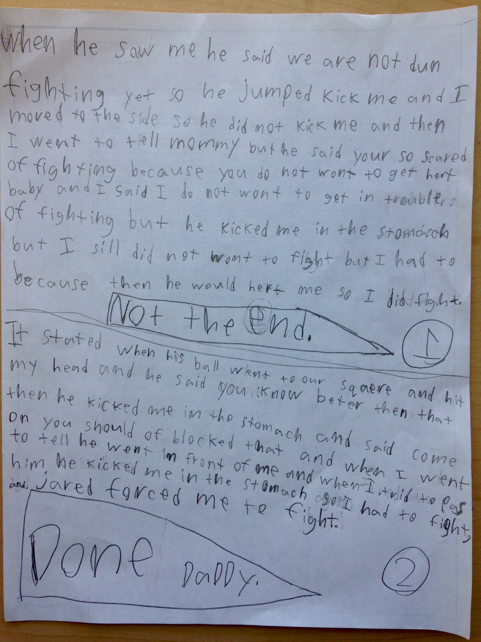 (4) My son replies, “I do not wont to get in trouble of fighting.”